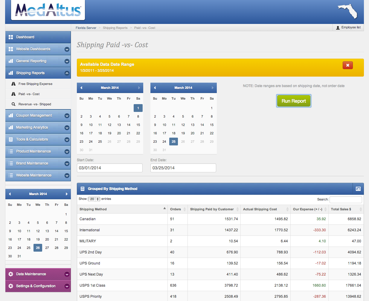 Actual Shipping Costs